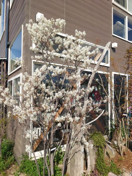 新芽の前に咲く花、丸みのある葉、食べられる実、赤〜橙の紅葉と各季節で楽しめる人気の樹木です。